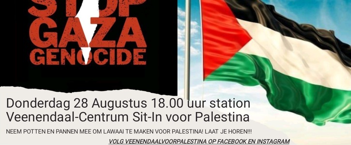 WEES AANWEZIG (en nodig iemand uit mee te gaan) bij de eerste sit-in voor Palestina en tegen Genocide aanstaande donderdag (28 augustus) 18:00 uur op station Veenendaal centrum.